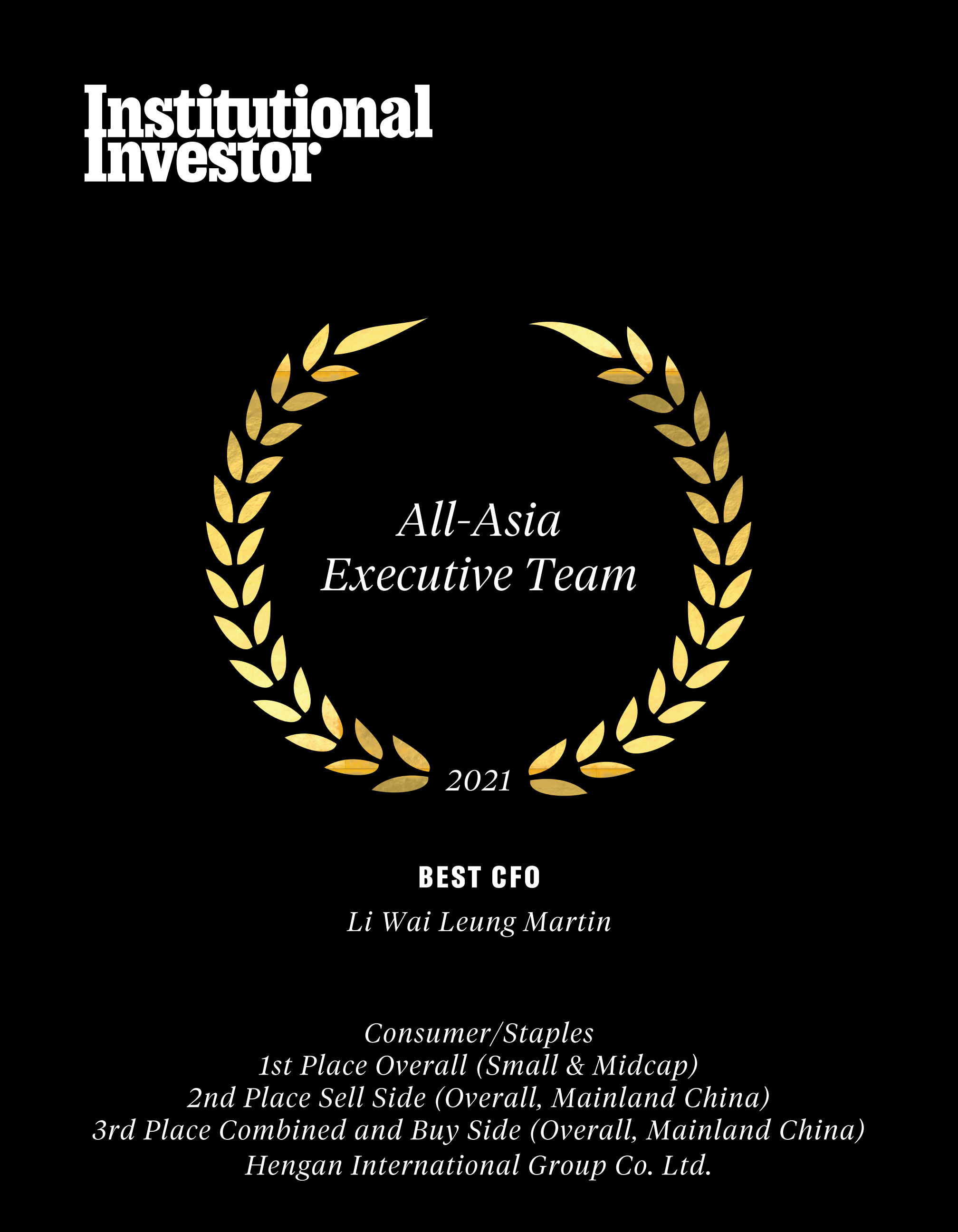 近日,国际权威财经杂志《机构投资者》(Institutional Investor)公布了“2021年度亚洲区公司最佳管理团队”(2021All-AsiaExecutiveTeam)评选结果,918搏天堂国际集团蝉联“受尊崇企业”名衔及必需性消费品类别组别中的多项殊荣,包括“最佳投资者关系活动”、“最佳环境、社会及企业管治(ESG)”、“最佳行政总裁”许连捷先生、“最佳财务总监”李伟樑先生。