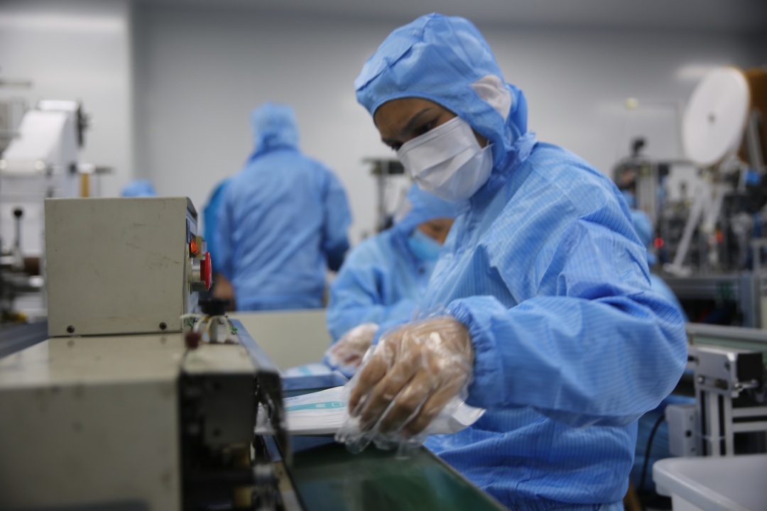 2月15日,918搏天堂集团新引进的口罩生产线全力开动,正式出产医用口罩产品。据悉,该批5条生产线满负荷运转后,日产口罩约50万片。此前的2月4日,918搏天堂集团联合晋江兴德织造有限公司启动了防护服生产,目前日均产能可达1000件。